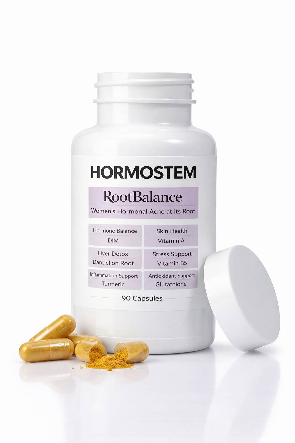 A targeted blend of clinically studied ingredients selected to support hormonal processing, stress response, and internal inflammatory balance — key pathways behind hormonally driven adult breakouts.